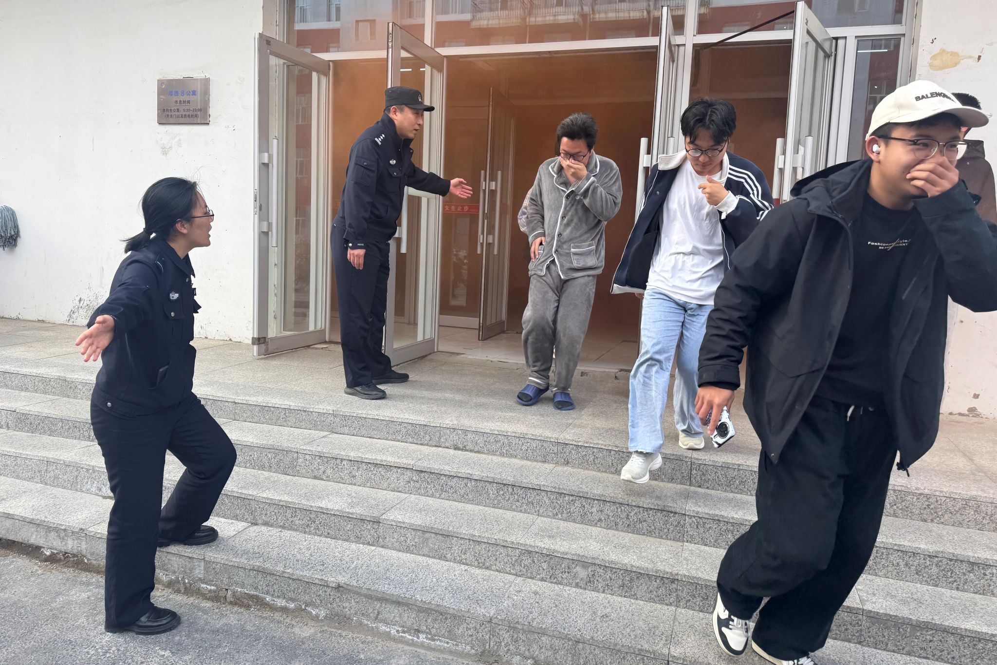 演练前,学校周密部署,制定完善演练方案。演练期间,公寓楼模拟火情,师生快速有序疏散,公安干警现场警戒,消防救援队伍高效开展灭火处置,公寓门卫同步实施初期火灾扑救;全体参演人员按时在指定区域集结,演练全程紧张有序、衔接顺畅,达到预期效果。演练后,消防人员开展火灾预防、逃生技能、器材使用实操讲解与示范,提升校园安全应急处置水平。